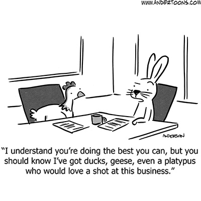 If you're a regular subscriber to our monthly newsletter, you know that we always leave you with a cartoon at the very end. We've been doing this for several years now and we've gathered quite a collection. We thought we'd group them into one location, for when you need a break or a laugh. Here are some of our favorites. Thanks to Mark Anderson of Andertoons.com. We subscribe to his cartoon website and he retains the copyright on the cartoons. We are delighted to support a working cartoonist! Enjoy!