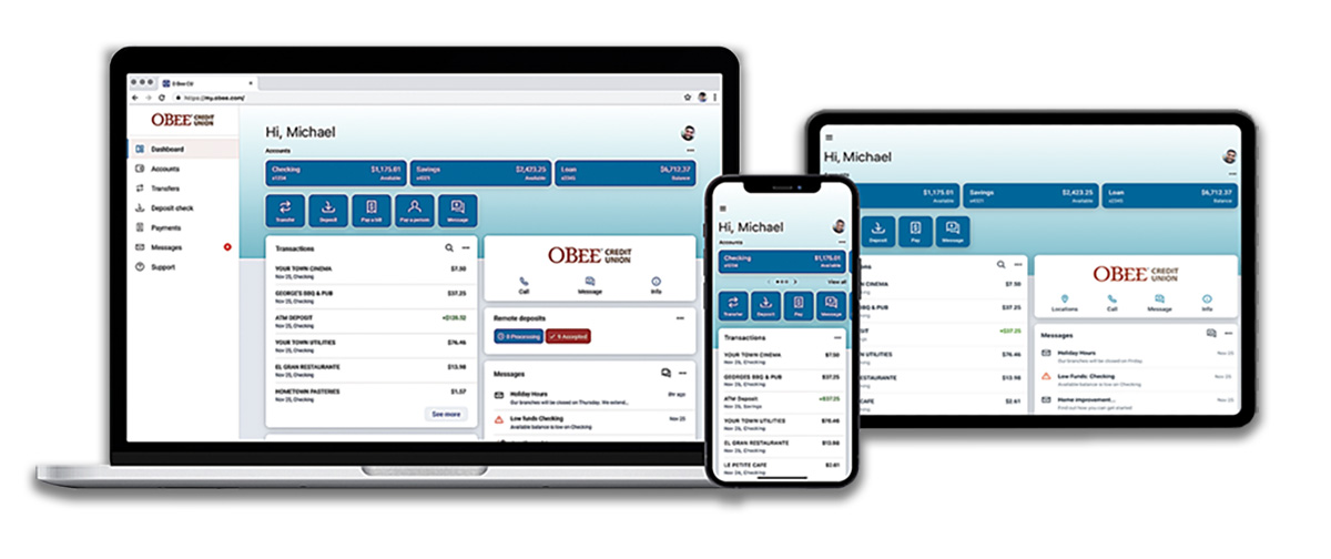 Online Banking allows you to view your accounts and conduct online transactions with your PC or laptop and an internet connection. The mobile app gives you equal access via your phone or tablet, so you can bank while you're away from your home. Mobile allows you to deposit checks with your phone and use touch ID or facial recognition.